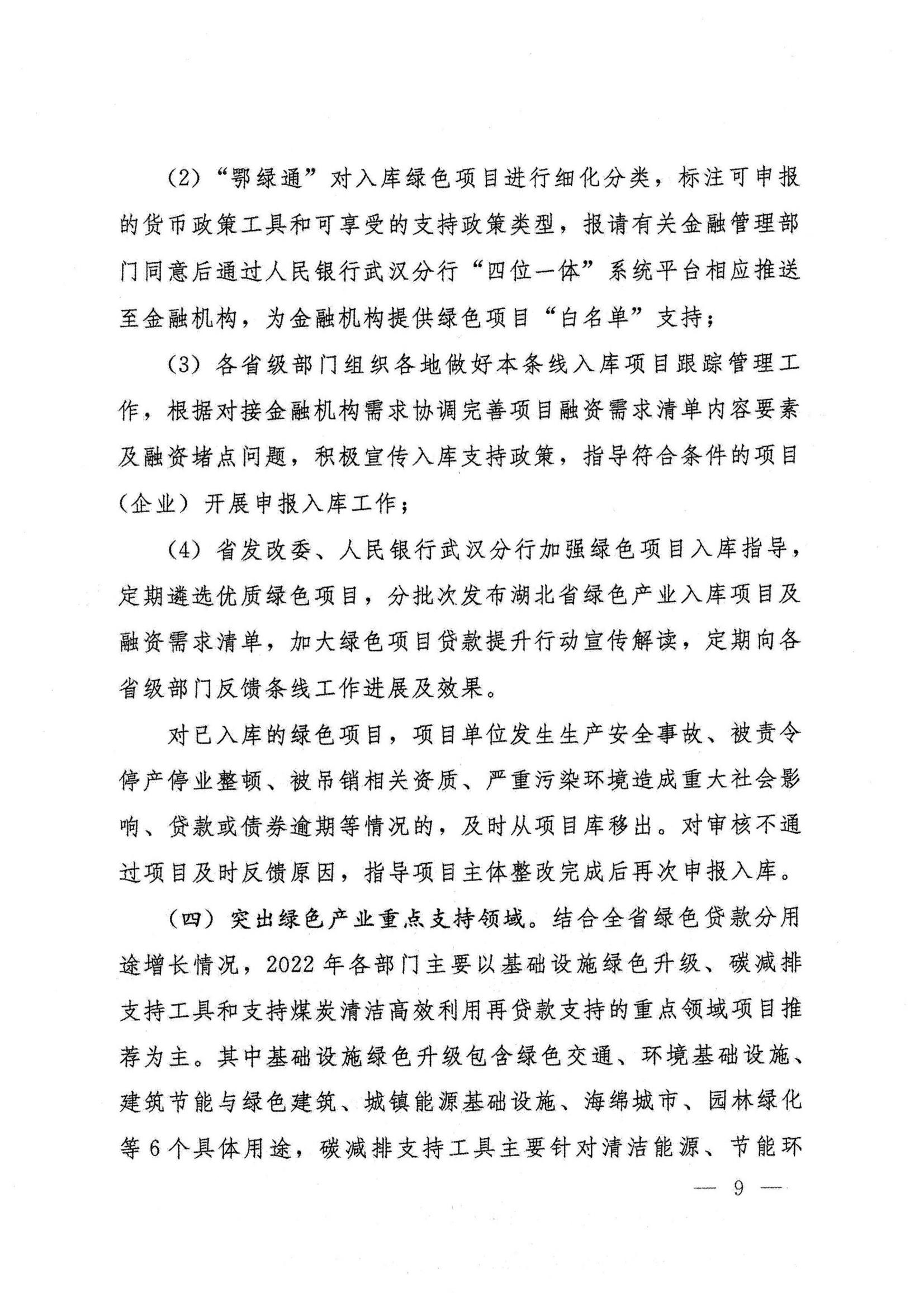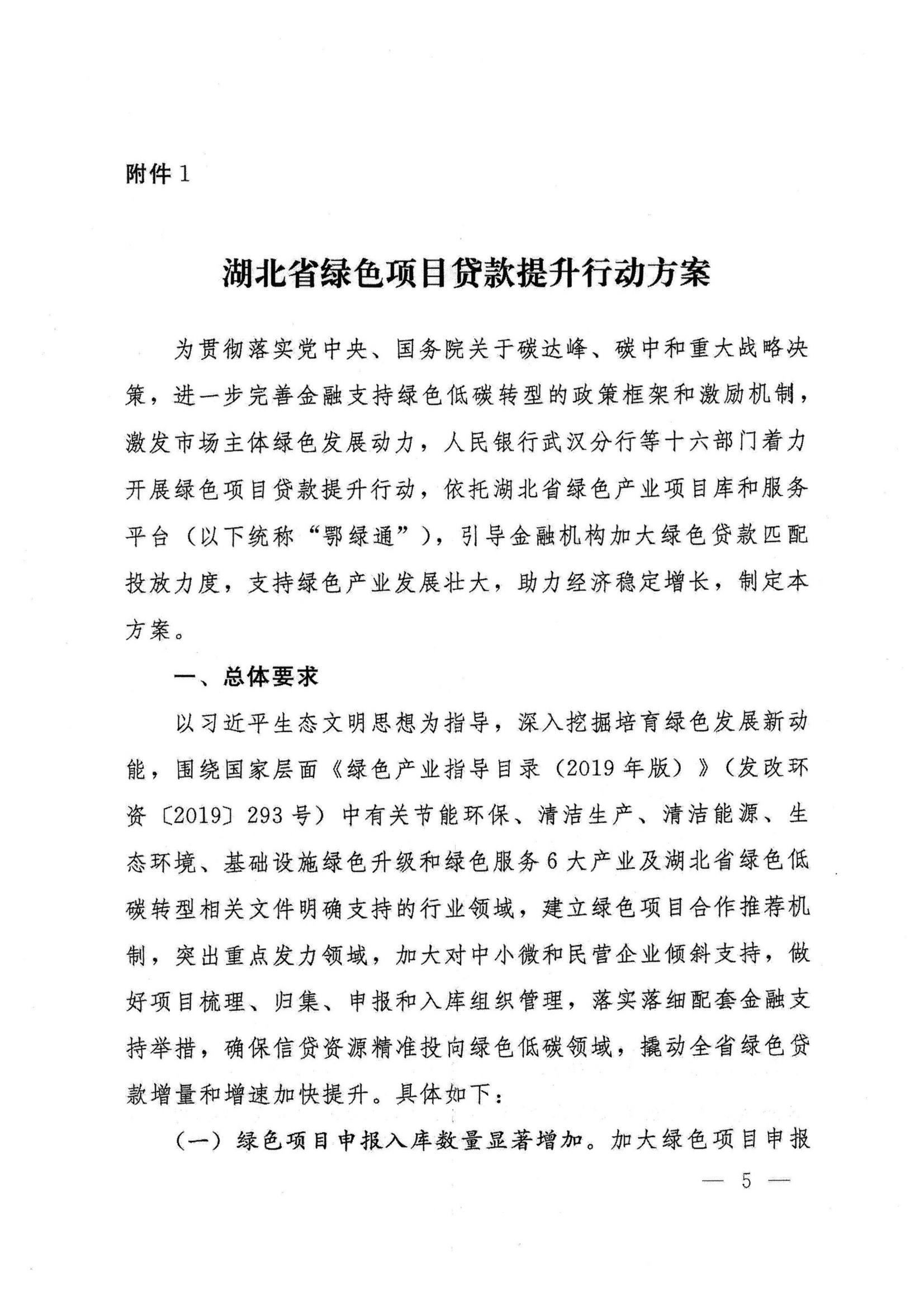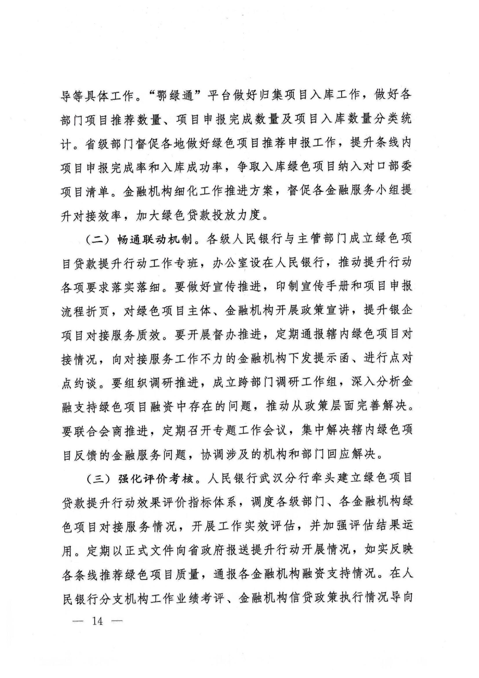 湖北省绿色项目贷款提升行动方案