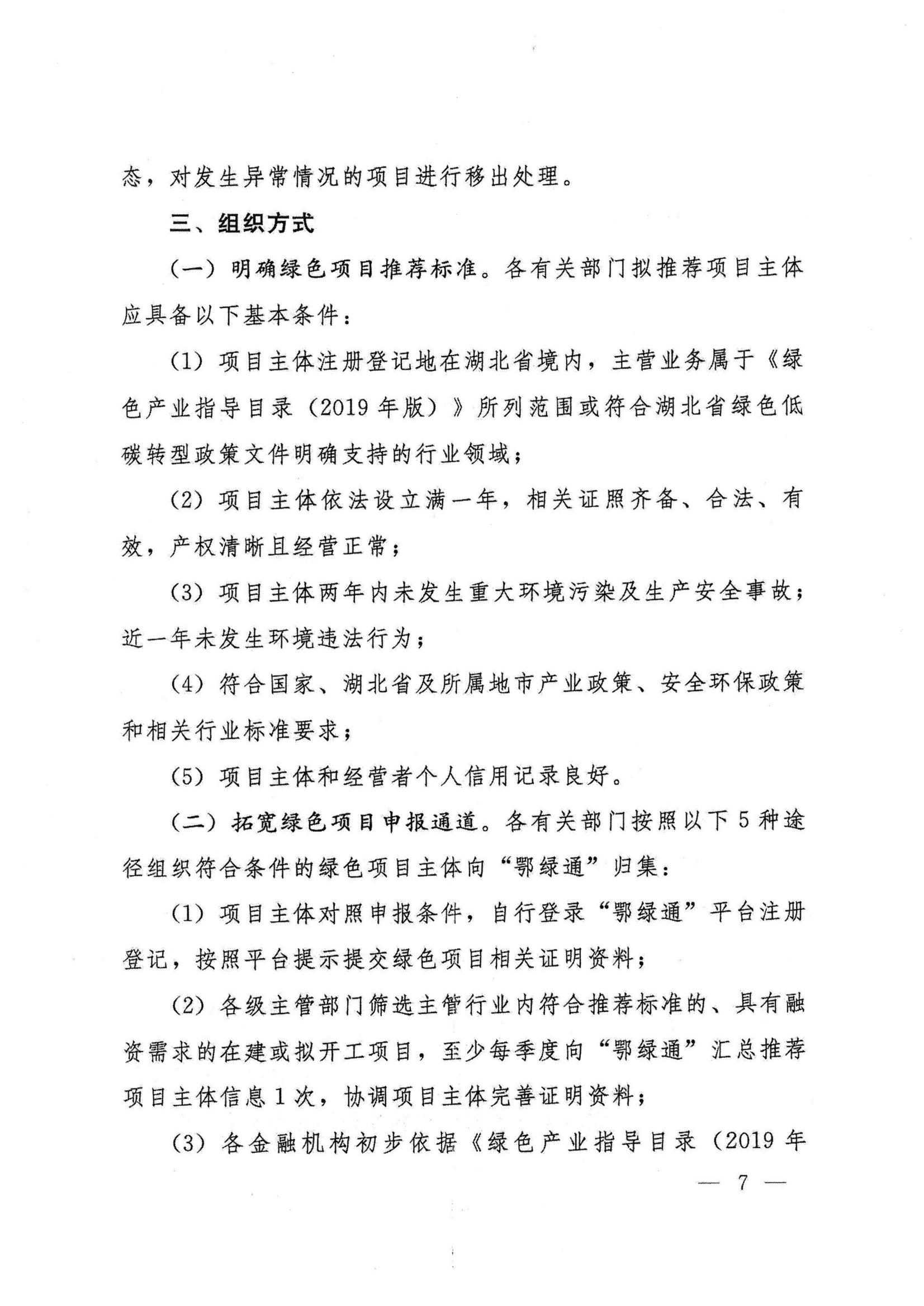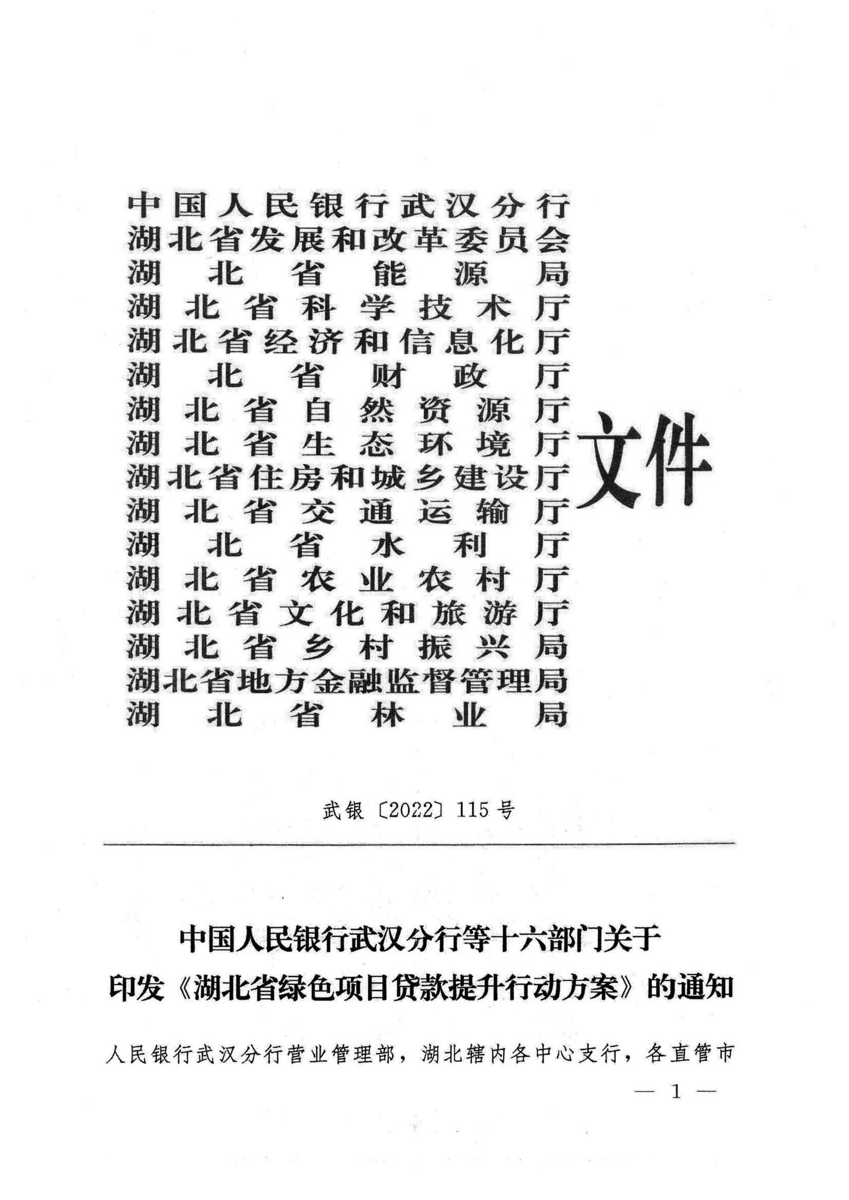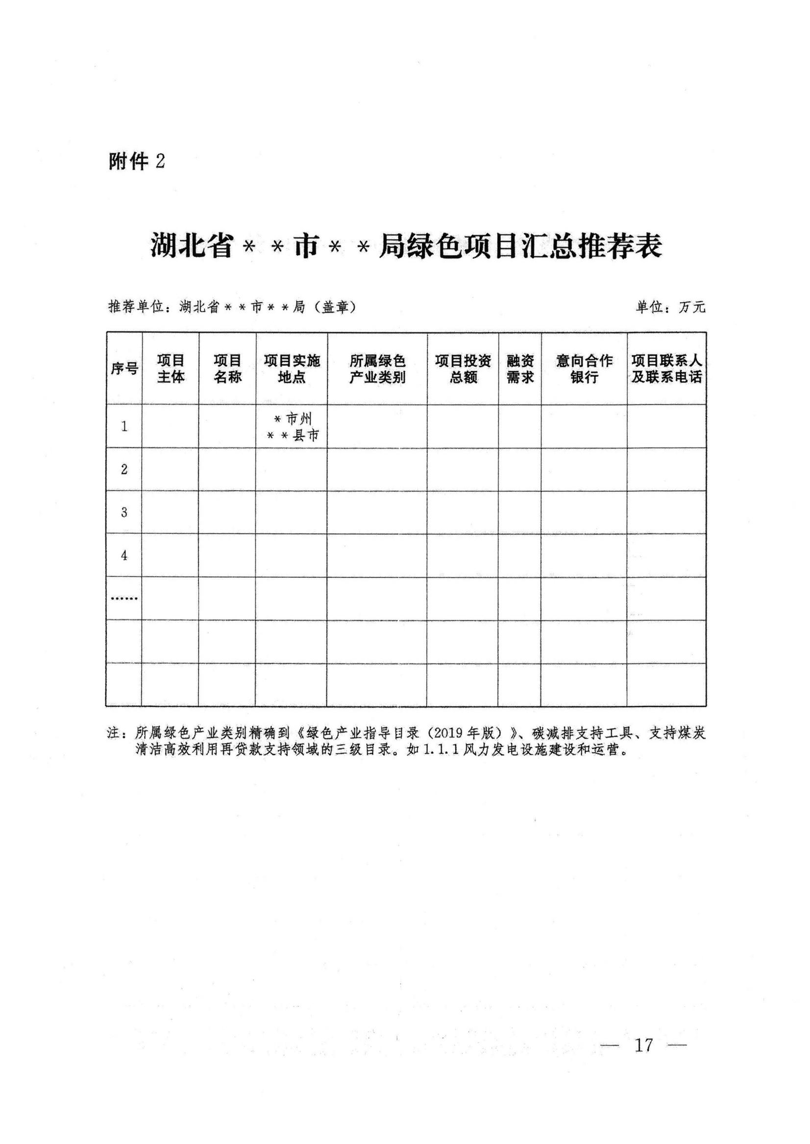 湖北省绿色项目贷款提升行动方案