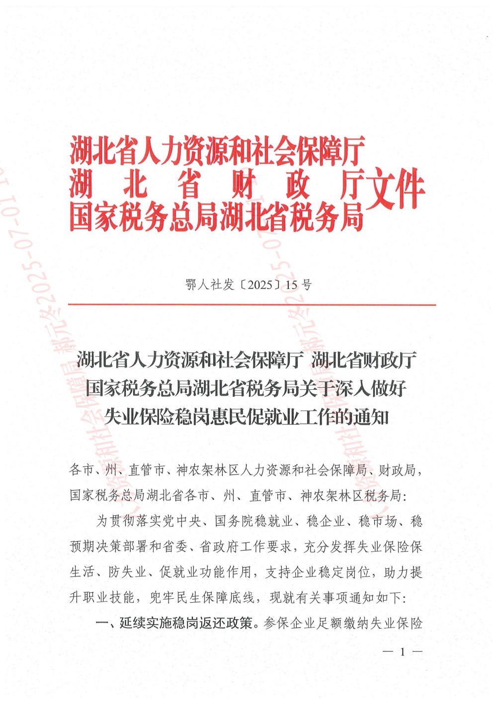 湖北省人力资源和社会保障厅 湖北省财政厅国家税务总局湖北省税务局关于深人做好失业保险稳岗惠民促就业工作的通知